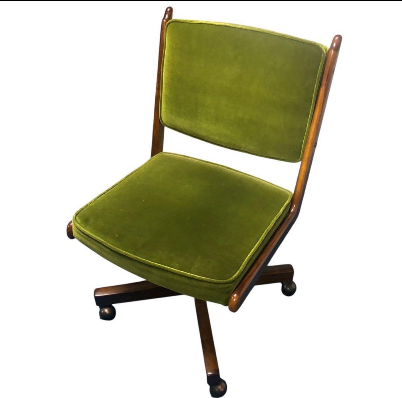 オールドカリモク コロニアルシリーズ グリーンベルベット風回転デスクチェア
